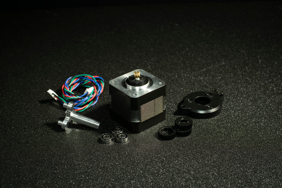 - All G2 kits are based around a custom-designed 9:1 MJF and Aluminum planetary gearbox, with a custom 9T stepper that features 20% higher surface area than the existing 10T designs (5mm tall spur gear vs 4mm tall spur gear) for increased wear protection and better power transfer from the stepper to the gearbox. The gearbox also follows the rules of planetary gearboxes, where the sun (spur) gear needs to be divisible by the number of planets for proper meshing and loading of the planets (3 planets, 9T spur).