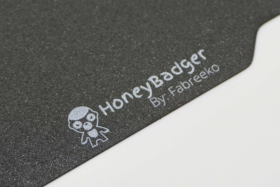 The honey badger is known for its tenacity and perseverance, so it's no surprise that you might feel the same after using this Legendary PEI sheets. fine-textured, 0.5mm genuine spring steel has been carefully crafted, finished with a sticky Powder coated PEI on one side and Smooth P Series PEI on the other ensuring perfect adhesion to your printer bed every time.